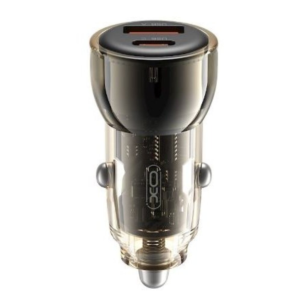 Caricabatteria da auto XO cc60 60w. Colore black. Doppia porta usb e type-c.