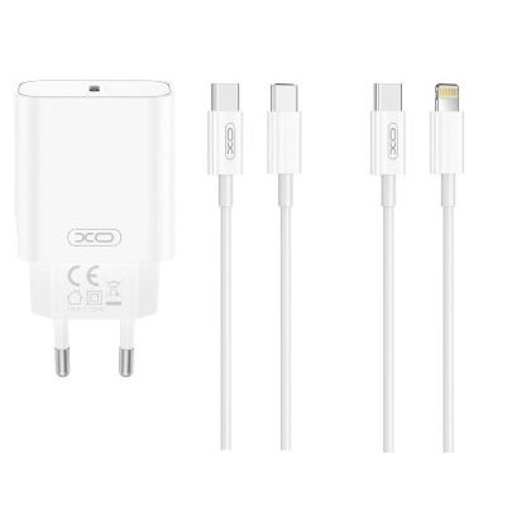 Prodotto CompatibileCaricabatteria da casa Type-C 20W XO CE32 con cavo da Type-C a Type-C white.