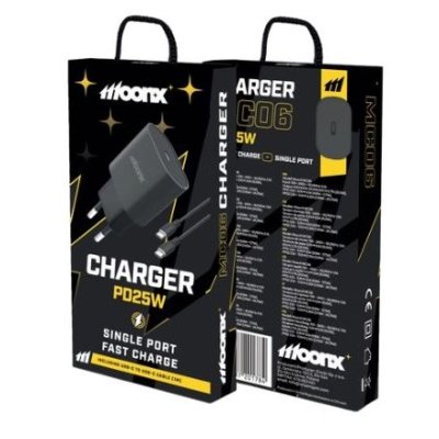 Prodotto CompatibileCaricabatterie da casa Type-C Moonx MC06 PD 25W con cavo Type-C black.