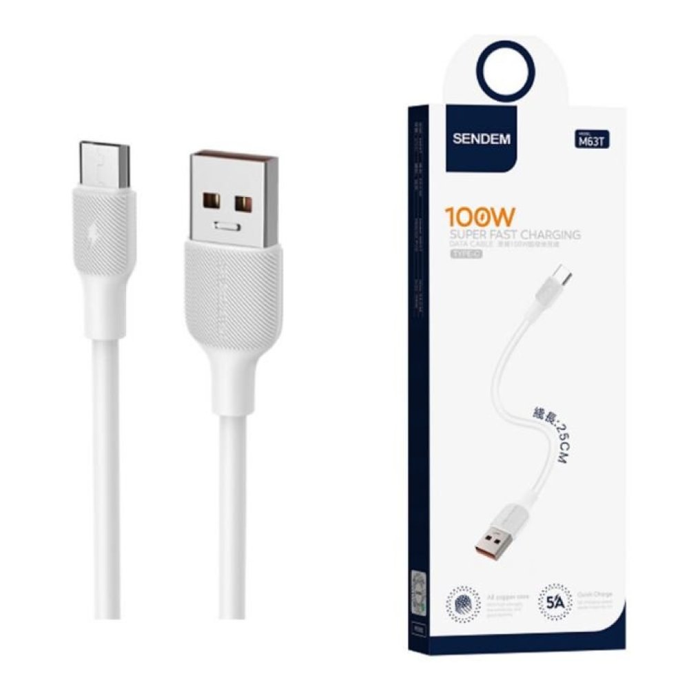 Prodotto CompatibileCavo USB Type-C corto 25 cm 100W Sendem M63T white.