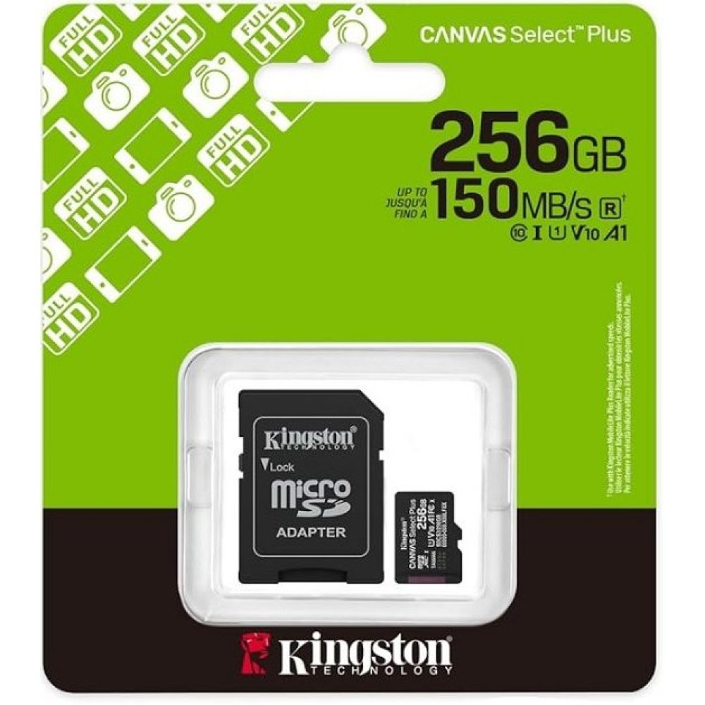 Memory card Micro-SD 256GB Kingston classe 10 SDCS3/256GB canvas select plus 150MB/s con adattatore.