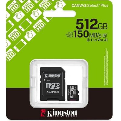 Memory card Micro-SD 512GB Kingston classe 10 SDCS3/512GB canvas select plus 150MB/s con adattatore.