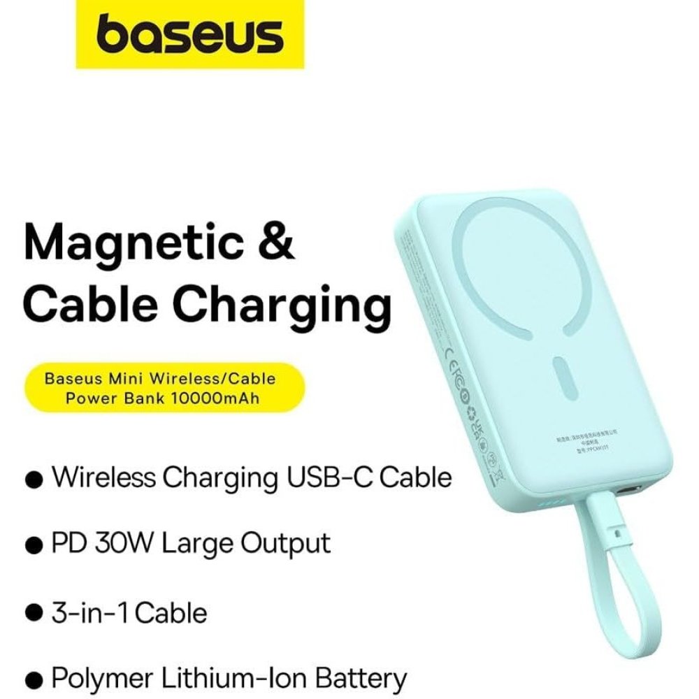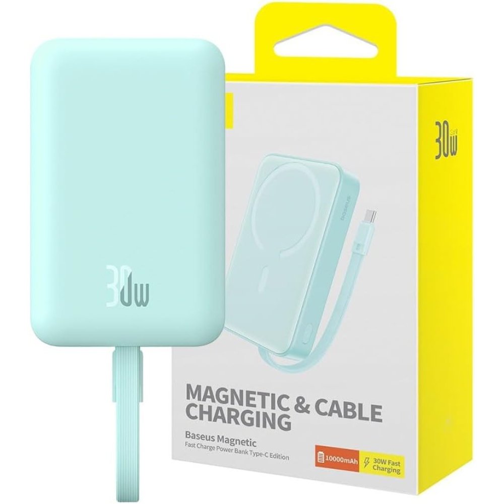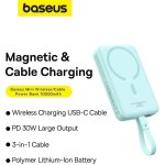 Power bank mini ricarica rapida wireless con Magsafe 10000 mAh 30W con cavo Type-C Baseus P1002210B333-00 peppermint blue.
